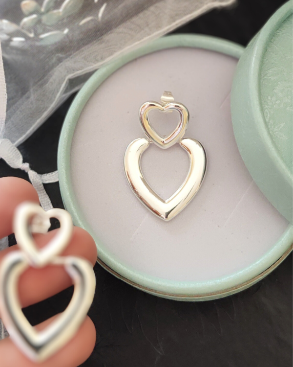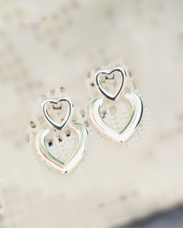 Dos corazones superpuestos que se encuentran en un mismo brillo. Livianos, resistentes al agua y pensados para acompañarte todos los días. Un detalle delicado que suma luz y una vibra romántica sutil, sin exagerar. Perfectos para regalar o regalarte. 🤍✨